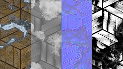 I made a flooded floor material that had some mold covered on top, which can be controlled by parameters to turn on and off. The render image created in Substance Designer.