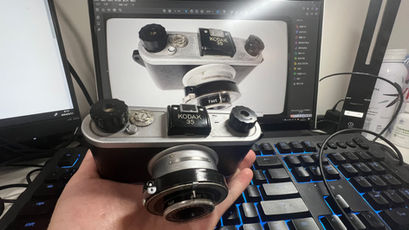 I built this camera from my real-life film camera reference. I first used Maya for modeling and UVing. I painted texture in Substance Designer. I took photos of the real camera and extracted the fonts from the camera with Photoshop. I rendered the camera in Substance Designer's default render, and the wireframe shot of the camera was taken in UE5.